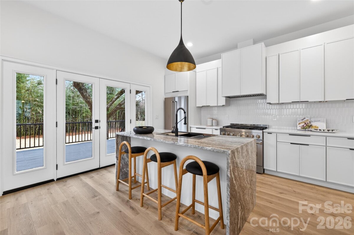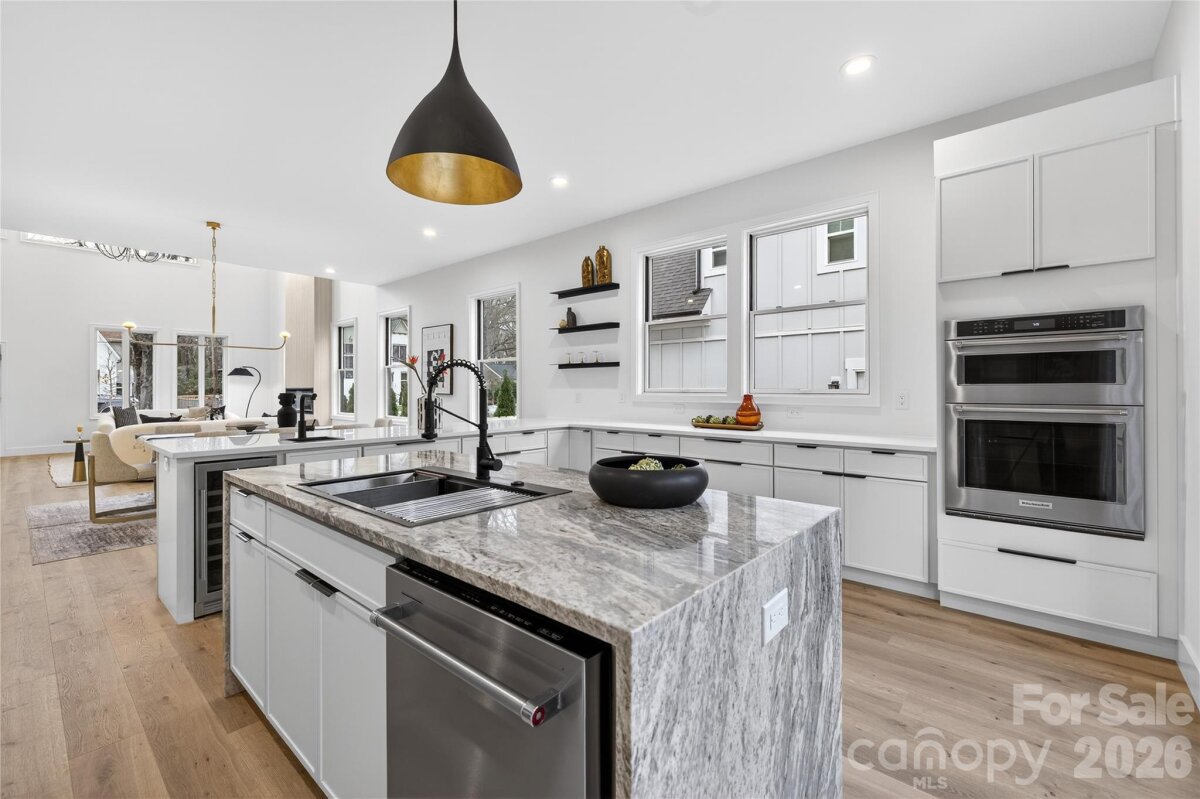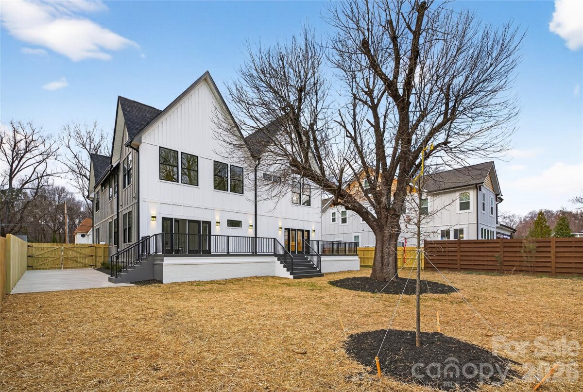 Step into modern elegance with this brand-new 5-bedroom, 4.5-bath home in the highly desirable Cotswold neighborhood, known for its charm, convenience, and proximity to Uptown Charlotte, parks, shopping, and dining. From the copper-accent roof and welcoming rocking-chair front porch to the extra-wide driveway with ample parking and a formal two-car garage, this home combines style and function. The fully fenced, private backyard with a large deck featuring composite decking offers an ideal space for entertaining, outdoor living, or relaxing. Inside, an inviting living room and foyer with soaring 20-foot vaulted ceilings create an open and airy atmosphere. Thoughtful design flows throughout, including two electric fireplaces, a main-floor guest room that could double as a master suite, and a dedicated office. Custom closets with built-ins and high-end finishes provide both beauty and convenience. The gourmet kitchen is a centerpiece, featuring a large waterfall island with sink, an additional bar sink on the peninsula, quartz countertops, gas range, and French-door refrigerator, seamlessly connecting to the dining and living areas for effortless entertaining. The primary suite offers a spa-like retreat with a freestanding tub, zero-entry shower, and elegant finishes, providing comfort and style. Additional features include high end LVP flooring throughout, a Navien gas tankless water heater, and a 30-year architectural shingle roof, ensuring durability and modern functionality. Located in one of Charlotte’s most sought-after neighborhoods, this home offers easy access to local restaurants, shopping, parks, and top-rated schools, making it ideal for families, professionals, or anyone seeking a perfect blend of luxury, convenience, and lifestyle. With high-end finishes, thoughtful design, and turnkey appeal, this property is a fantastic opportunity to enjoy Cotswold living in the heart of Charlotte. Schedule your showing today!