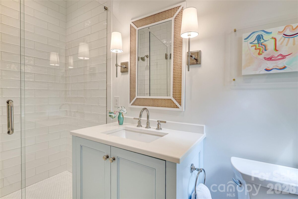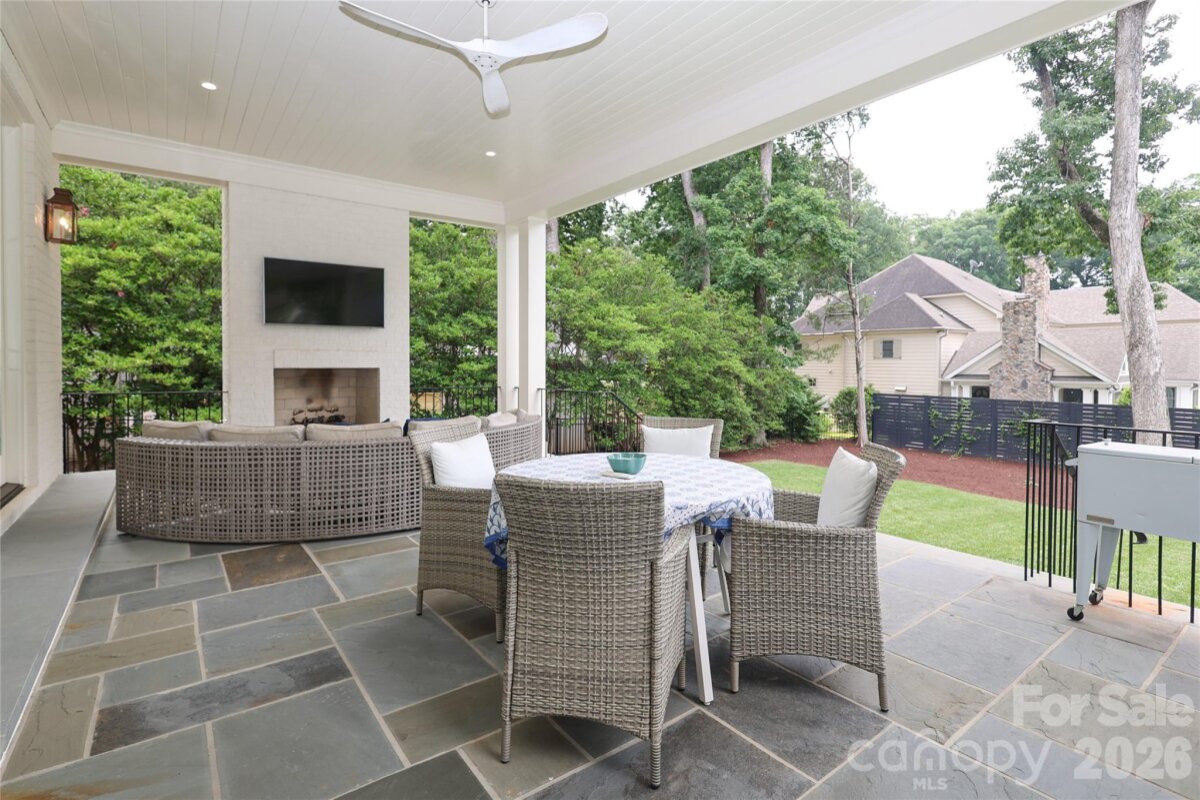 Exceptional 2022 build by Whittington Builders, thoughtfully designed by Greg Perry and located on a quiet block in the heart of Cotswold. Offering timeless style, high-end finishes, and beautifully designed living spaces. A gracious foyer opens to elegant dining and living rooms. As you would expect, the chef’s kitchen is amazing: custom cabinetry, premium appliances and a wet bar/butler’s pantry contributes to easy living with second built-in refrigerator, dishwasher & ice maker. Friend's side entrance, mud room w/ built-ins adds function and style. Light-filled family room and separate breakfast area open to a covered bluestone porch with fireplace and a flat, fenced backyard. A private study tucked between main living spaces offers flexible uses. Upstairs features primary suite, three secondary en suite bedrooms, and laundry. The third floor offers a bonus room, 5th bedroom, full bath, flex space, and conditioned storage. All just minutes from Uptown, SouthPark, and Plaza Midwood.