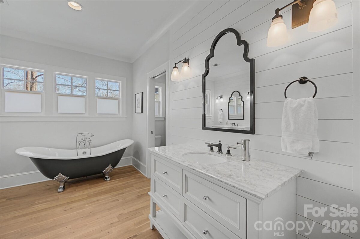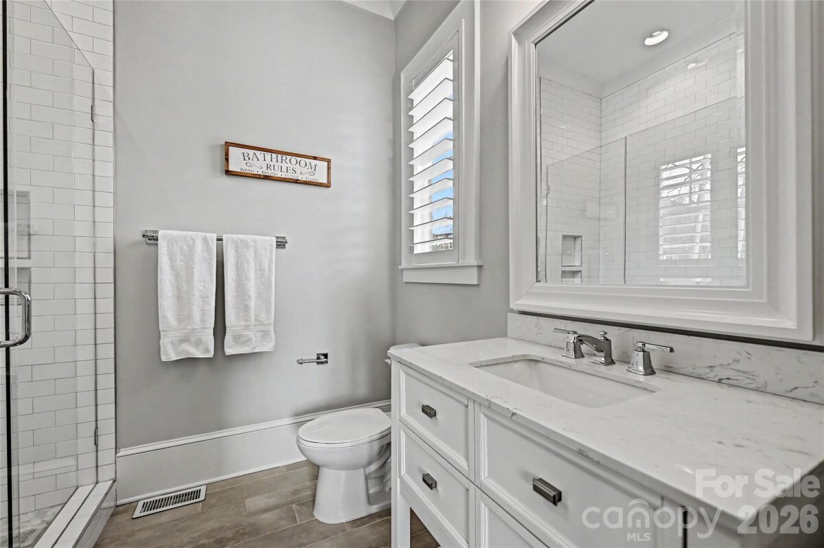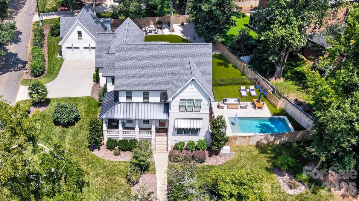 Set on a stunning .46 acre corner lot with exceptional curb appeal, this like-new modern farmhouse by Pike Properties offers luxury living in the coveted Cotswold neighborhood. The 5 bedroom, 4 1/2 bath home features white oak floors, 10’ coffered ceilings, abundant natural light, Hunter Douglas window treatments, Generac whole home generator, and multi-zone Nest thermostats. The gourmet kitchen features high-end appliances, substantial island, instant hot water dispenser, walk-in pantry, butler’s pantry and opens to the great room with gas fireplace and custom built-ins. The primary suite includes a vaulted ceiling, reading nook, and spa bath. The private, expansive, fenced backyard is tiered with multiple outdoor living areas, including a heated saltwater PebbleTec pool with travertine decking, 7 person Caldera Spa, screened porch, stone patio, landscape lighting, and 4,000 sq ft of premium synthetic turf plus custom shed. Detached 2 car garage with 485 sq ft of semi-finished, flex space above. Close to shopping, dining, and Charlotte Swim and Racquet Club. Additional photos and details in photo tour link.