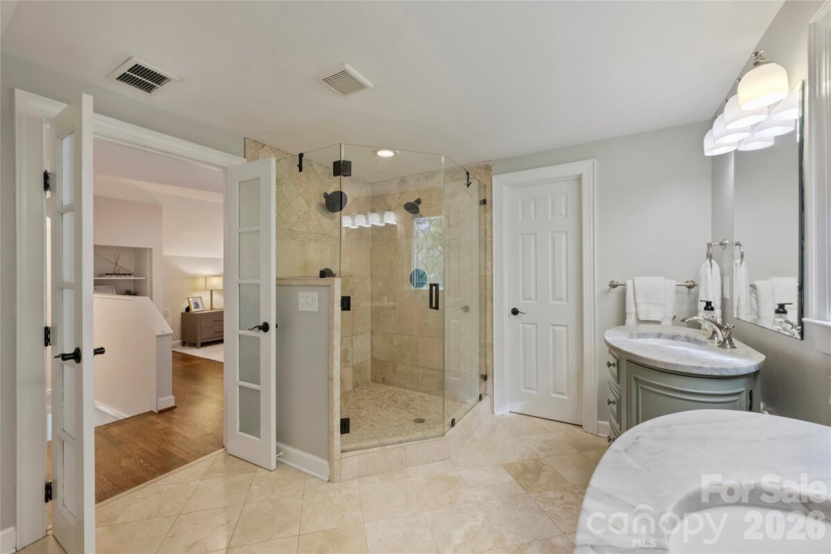 Perfectly positioned in Myers Park, this charming cottage is just steps from Selwyn Avenue, Park Road Shopping Center, and the Greenway, placing you moments from beloved local shops, dining favorites, and scenic outdoor trails. The thoughtfully designed floor plan features three spacious bedrooms, each with a private bath, along with inviting living and dining areas ideal for everyday living and entertaining. The sunlit kitchen shines with stainless steel appliances, generous cabinetry, ample counter space, and a beverage fridge. Upstairs, the expansive primary retreat offers a walk-in closet, spa-like bath, and dedicated office nook. A beautiful paver patio and manicured backyard provide the perfect low-maintenance outdoor space. This special home blends charm, comfort, and an unbeatable location — don’t miss it!