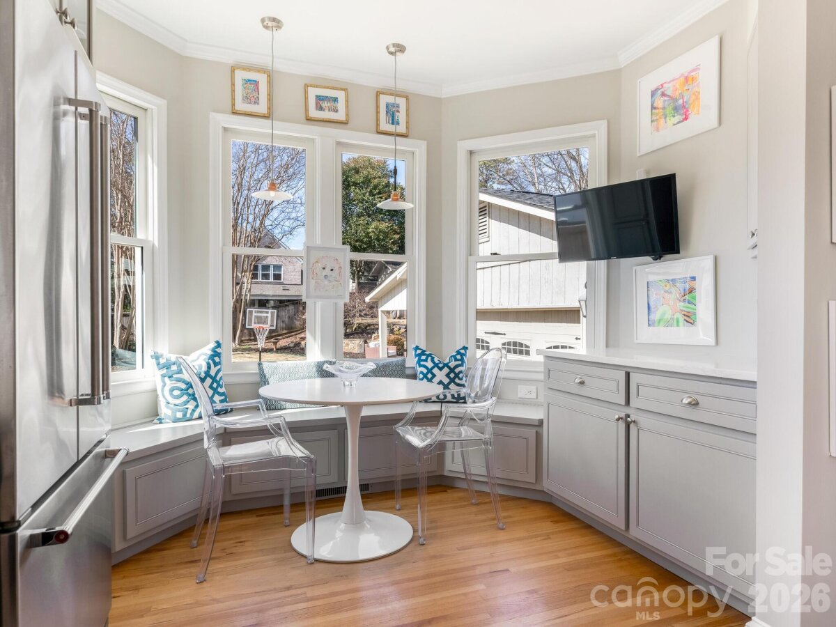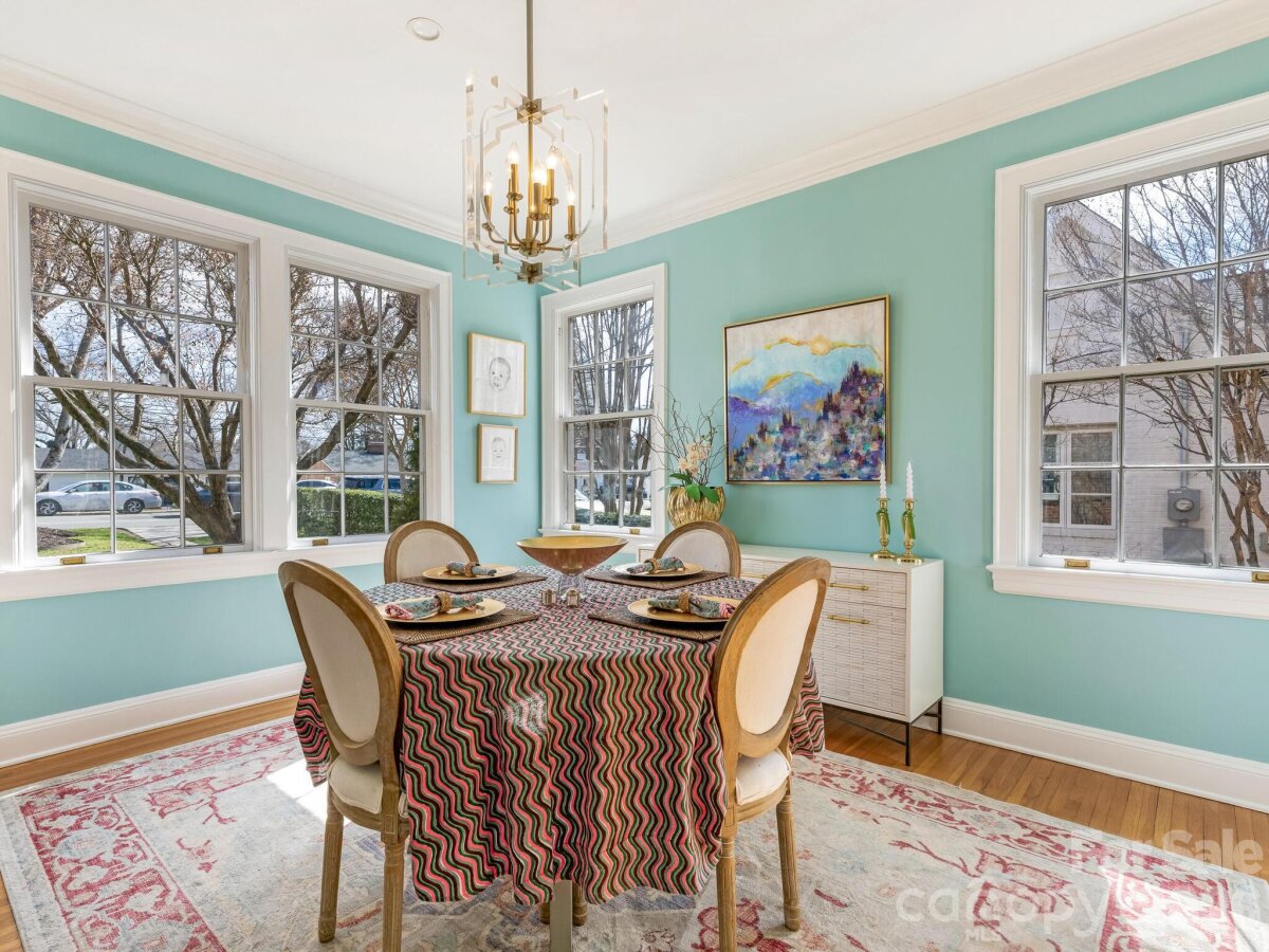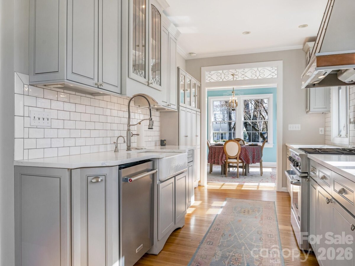Welcome to 3224 Selwyn Avenue — a classic cottage in the heart of Myers Park, thoughtfully updated and expanded to offer a modern floorplan while preserving its timeless charm. Enter into a welcoming living room featuring a gas fireplace, tall ceilings, original hardwoods, and beautiful moldings that carry throughout most of the main level. A sunny dining room with a built-in bar flows seamlessly into the spacious kitchen, complete with quartz countertops, a six-burner gas range, stainless steel hood with copper trim, large apron front sink, and sleek cabinetry. Just off the kitchen, the breakfast nook features a bay window with built-in seating and a dedicated coffee bar — the perfect spot to start your day. The main level also includes a private office with custom built-in bookcases and a serene primary suite featuring dual walk-in closets with stackable washer/dryer hook up and a spa-like ensuite bath with dual vanities and an oversized shower. Upstairs, you’ll find three additional bedrooms — two with en-suite baths — plus a large bonus room providing excellent secondary living space. Outdoor living is just as impressive, featuring fully enclosed back yard with an electric gate for added privacy, a two-car garage, a covered patio designed for effortless entertaining, and a putting green chipping area. The outdoor kitchen is fully equipped with a granite countertop, Blaze six-burner gas grill, Blackstone griddle, and pizza oven hookup. Lovely hardscape throughout bakcyard w/ raised garden bed. The detached shed has been thoughtfully converted into an office space w/wall unit, ideal for working from home or a private studio setup. Ideally located close to Reid's Fine Foods, The Jimmy, Rada, and so much more — this is Myers Park living at its best.