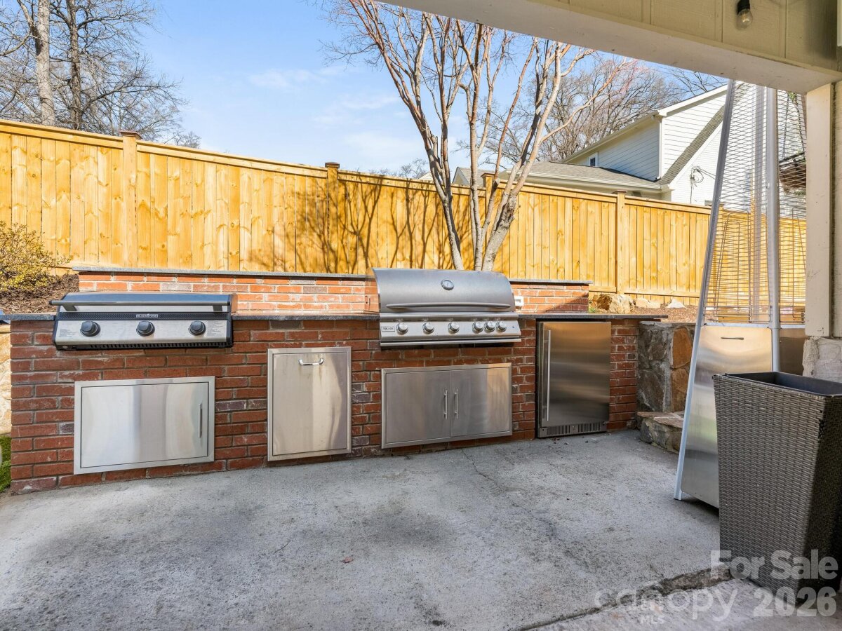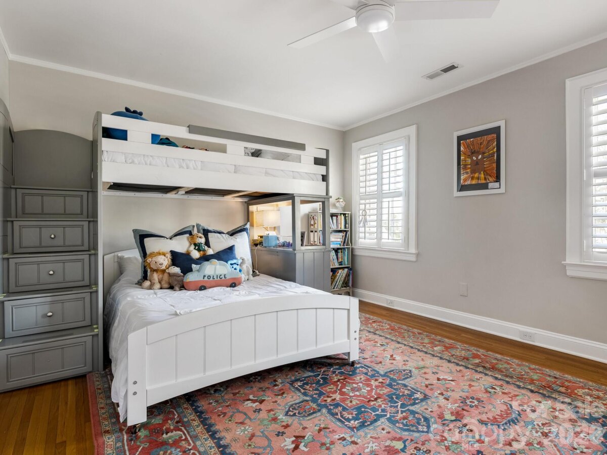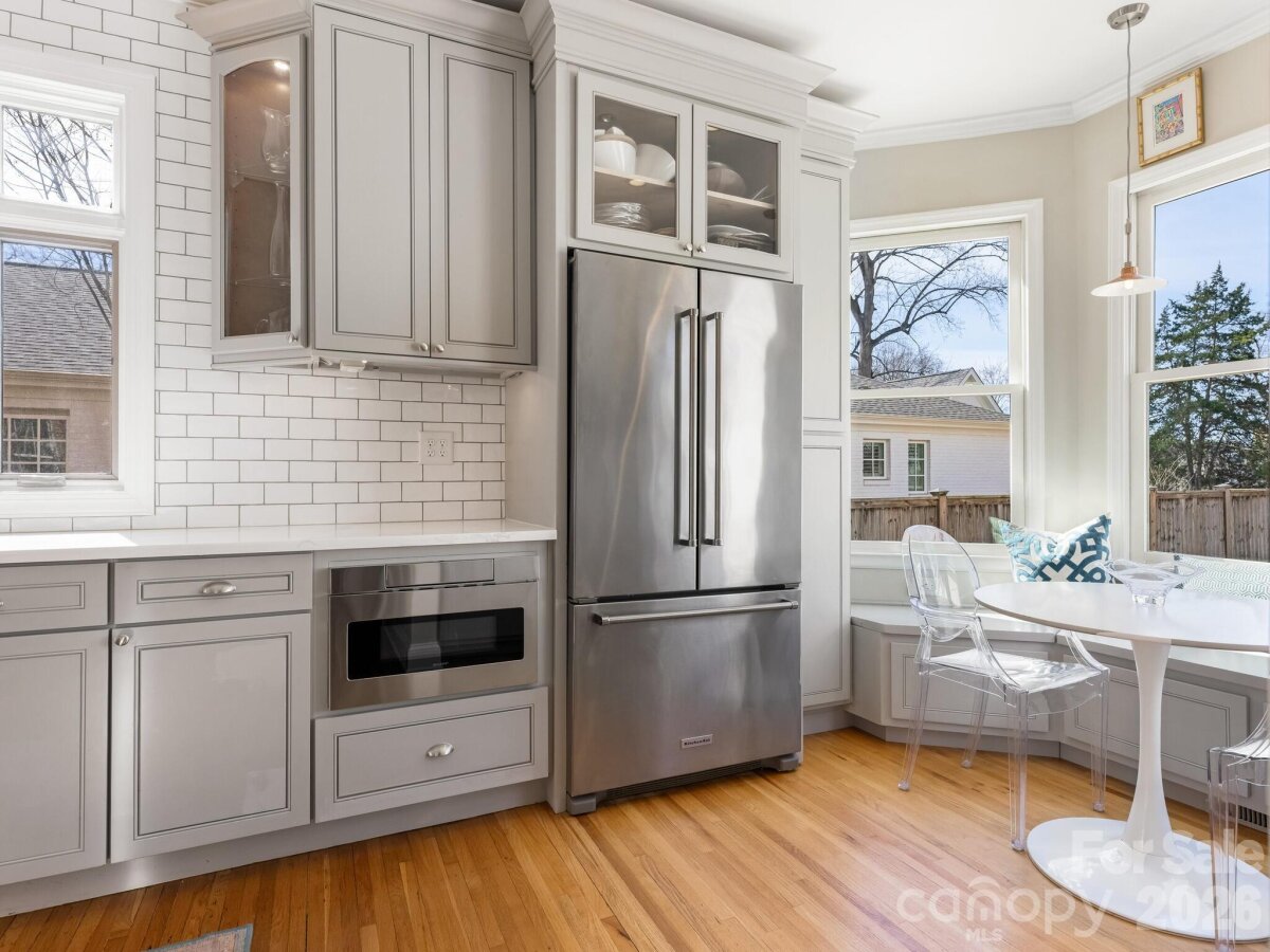 Welcome to 3224 Selwyn Avenue — a classic cottage in the heart of Myers Park, thoughtfully updated and expanded to offer a modern floorplan while preserving its timeless charm. Enter into a welcoming living room featuring a gas fireplace, tall ceilings, original hardwoods, and beautiful moldings that carry throughout most of the main level. A sunny dining room with a built-in bar flows seamlessly into the spacious kitchen, complete with quartz countertops, a six-burner gas range, stainless steel hood with copper trim, large apron front sink, and sleek cabinetry. Just off the kitchen, the breakfast nook features a bay window with built-in seating and a dedicated coffee bar — the perfect spot to start your day. The main level also includes a private office with custom built-in bookcases and a serene primary suite featuring dual walk-in closets with stackable washer/dryer hook up and a spa-like ensuite bath with dual vanities and an oversized shower. Upstairs, you’ll find three additional bedrooms — two with en-suite baths — plus a large bonus room providing excellent secondary living space. Outdoor living is just as impressive, featuring fully enclosed back yard with an electric gate for added privacy, a two-car garage, a covered patio designed for effortless entertaining, and a putting green chipping area. The outdoor kitchen is fully equipped with a granite countertop, Blaze six-burner gas grill, Blackstone griddle, and pizza oven hookup. Lovely hardscape throughout bakcyard w/ raised garden bed. The detached shed has been thoughtfully converted into an office space w/wall unit, ideal for working from home or a private studio setup. Ideally located close to Reid's Fine Foods, The Jimmy, Rada, and so much more — this is Myers Park living at its best.